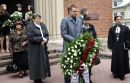 Valsts prezidents Andris Bērziņš (centrā) piedalās bēru ceremonijā no ...