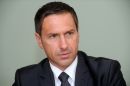 Uzņēmējs Andris Šķēle (no labās) piedalās bēru ceremonijā no mūžībā ...