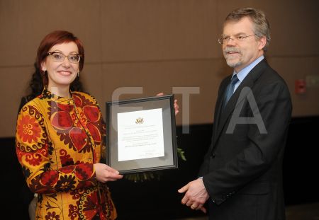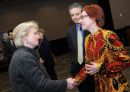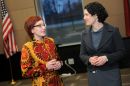 Saeimas deputāte Daina Kazāka (no labās) sveic resursu centra ...