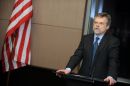 ASV vēstnieks Latvijā Marks Pekala saka runu pasākumā, kurā ASV ...