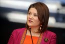 Saeimas deputāte Daina Kazāka saka runu pasākumā, kurā ASV ...