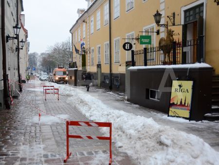 Notiek sniega un ledus novākšana Torņu ielā.