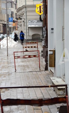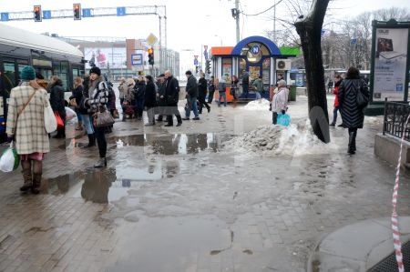 Sniegs, ledus un ūdens 13.janvāra ielā.