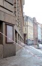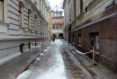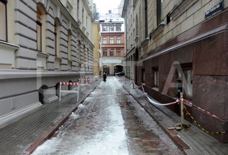 Ar drošibas lentām un barjerām norobežotā Mazā Trokšņu iela, kur ...