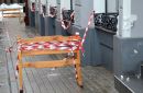 Ar drošibas lentām un barjerām norobežotā ietve, kur gājēju drošību ...