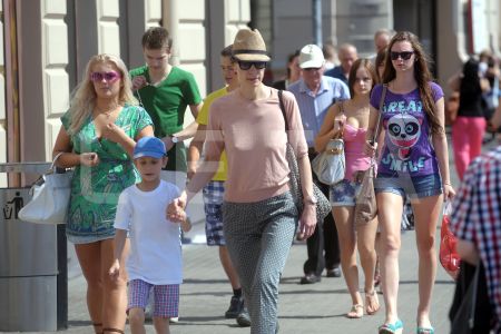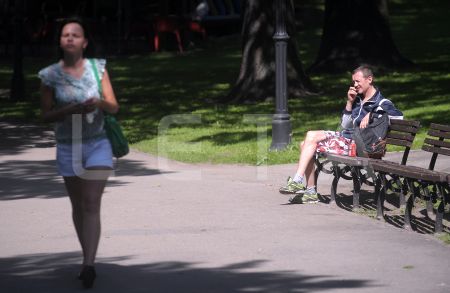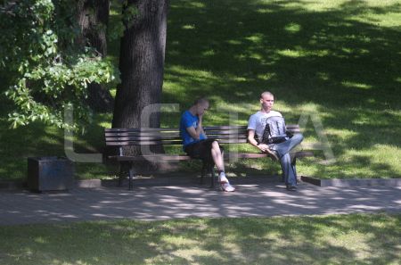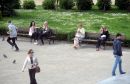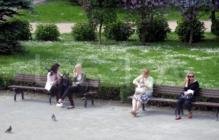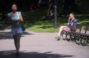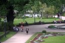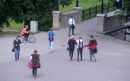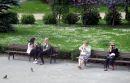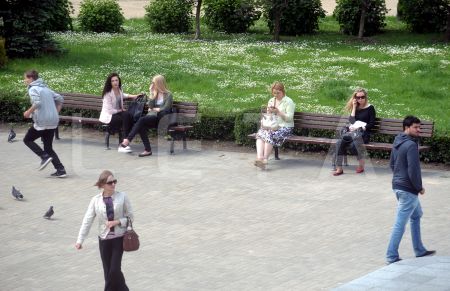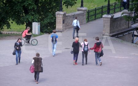 Cilvēki skvērā pie Latvijas Nacionālās operas.
