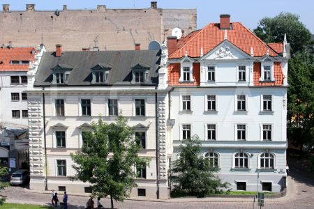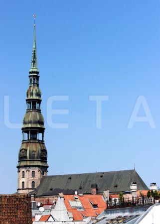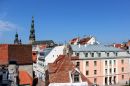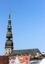 Sv.Pētera baznīcas tornis un vecpilsētas nami.