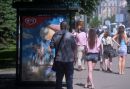 Degvielas tirgotāja "Lukoil" reklāma uz Preses nama jumta.