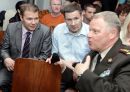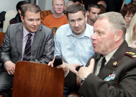 Saeimas deputāts Raivis Dzintars (no kreisās) un Nacionālo bruņoto ...