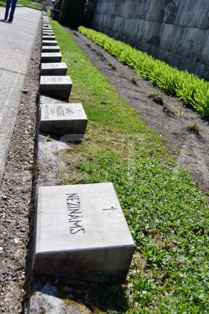 Viena no bojātajām un apzagtajām piemiņas akām Rīgas Brāļu kapu ...