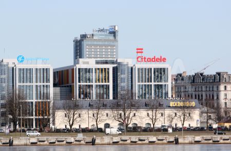 Skats no Ķīpsalas uz bankas "Citadele" administratīvo ēku.