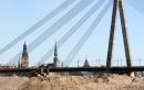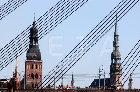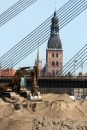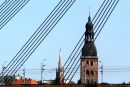 Vanšu tilta vantis un Vecrīgas baznīcu torņi.
