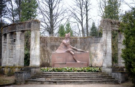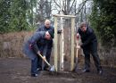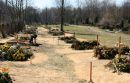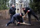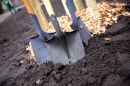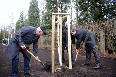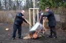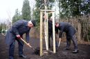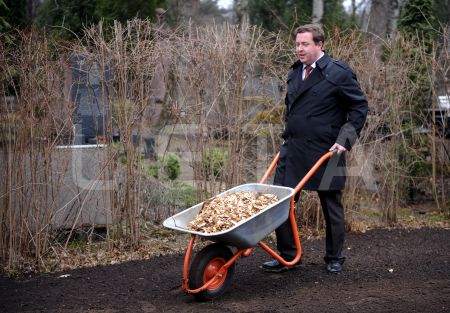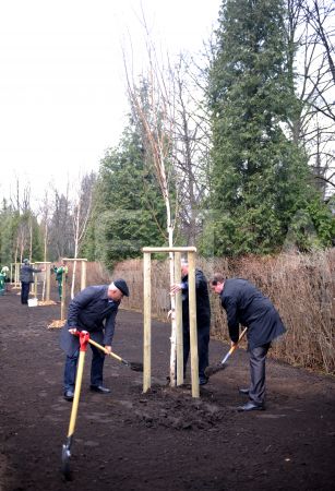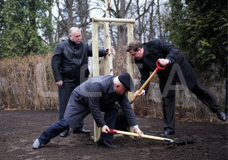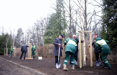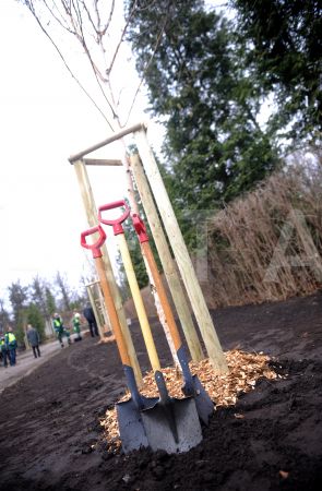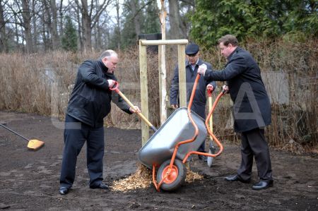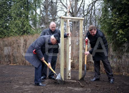 Lāpstas pie iestādītajiem Himalaju bērziem Raiņa kapos, kur tiek ...