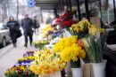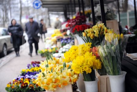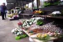 Ziedu un vainagu tirgošanās vieta pie Miķeļa kapiem.