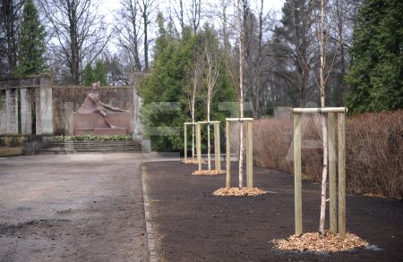 Iestādītā Himalaju bērzu aleja Raiņa kapos.