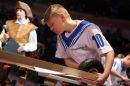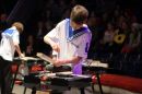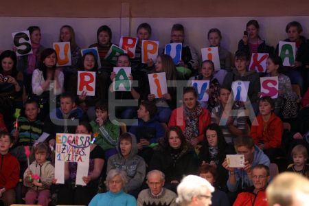 Skatītāji vēro konkursa "Superpuika 2013" finālu Rīgas cirkā.