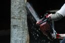 Brīdinājums "Nikns suns" uz sētas Čiekurkalnā.
