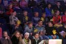 Skatītāji vēro konkursu "Superpuika 2013" finālu Rīgas cirkā.