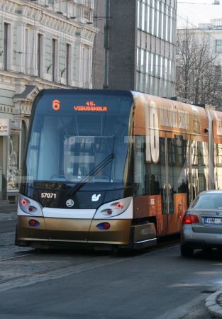 Zemās grīdas tramvajs Kr.Barona ielā.