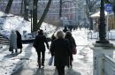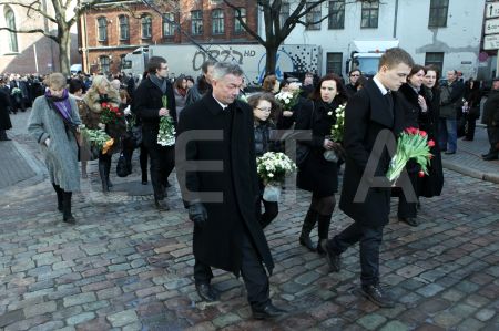 Cilvēki dodas uz Doma baznīcu, kur notiek atvadīšanās no mūžībā ...