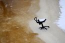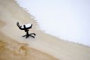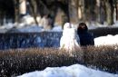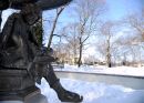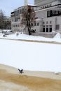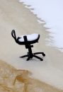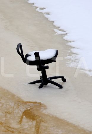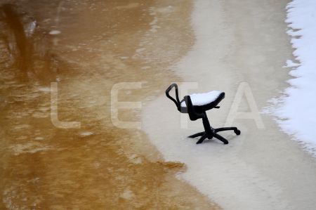 Biroja krēsls uz Rīgas kanāla ledus pie Latvijas Nacionālās operas.
