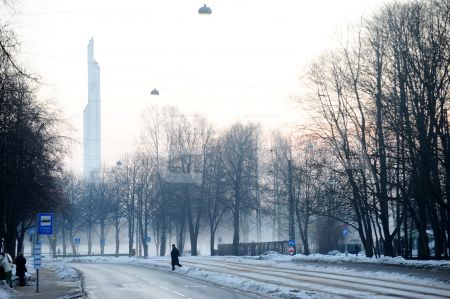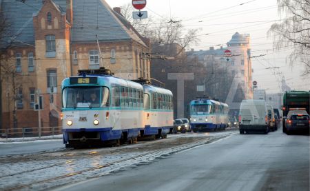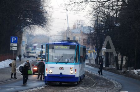 Tramvajs Uzvaras bulvārī.