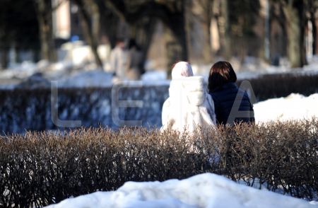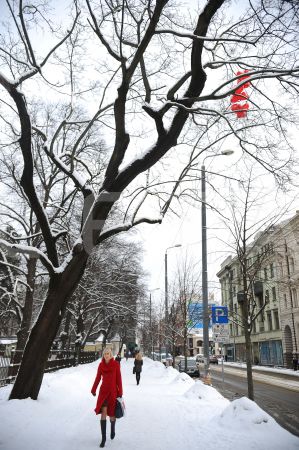Sieviete ziemas dienā.