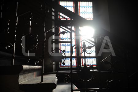Logs kāpņu telpā.