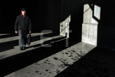 Cilvēks tunelī.