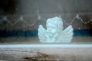 Enģeļa figūra logā.