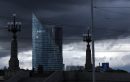 "Swedbank" administratīvā ēka "Saules akmens" un laternas.