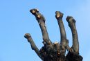 Sētnieka darba rīki - grābeklis un liekšķere.