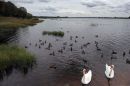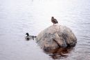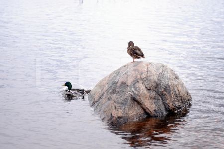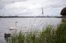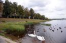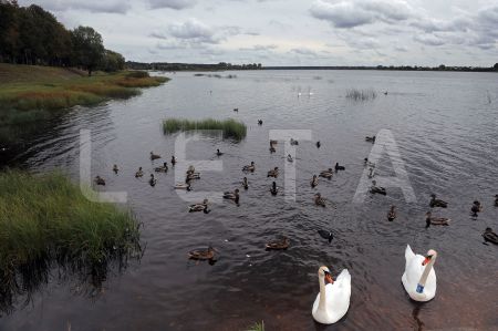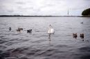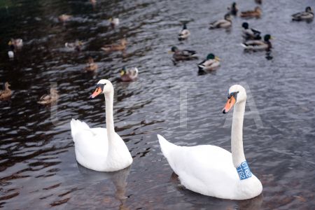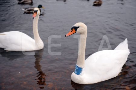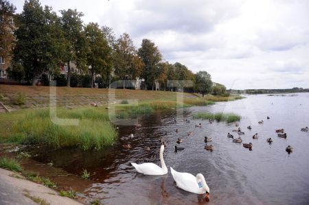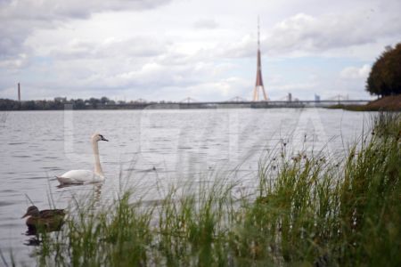 Gulbji un pīles Daugavā pie Ķengaraga promenādes.