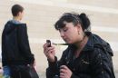 Sieviete tirgo sēnes Rīgas Centrāltirgū.