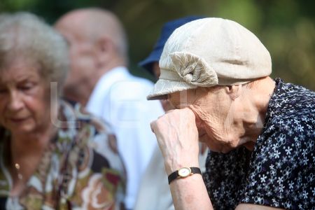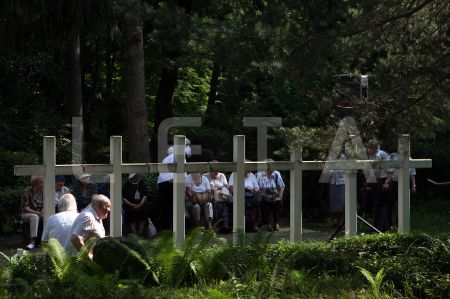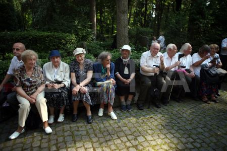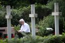 Cilvēki Rīgas 1.Meža kapu Balto krustu kapulaukā piedalās svētbrīdī, ...