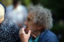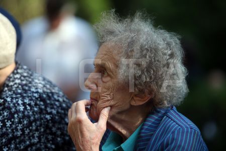 Sieviete Rīgas 1.Meža kapu Balto krustu kapulaukā piedalās svētbrīdī, ...