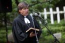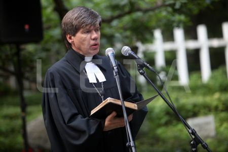 Mācītājs Guntis Kalme uzrunā klātesošos Rīgas 1.Meža kapu Balto ...