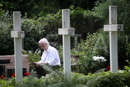 Vīrietis Rīgas 1.Meža kapu Balto krustu kapulaukā piedalās svētbrīdī, ...