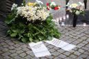 Ziedi pie pieminekļa Rīgas 1.Meža kapu Balto krustu kapulaukā, kur ...