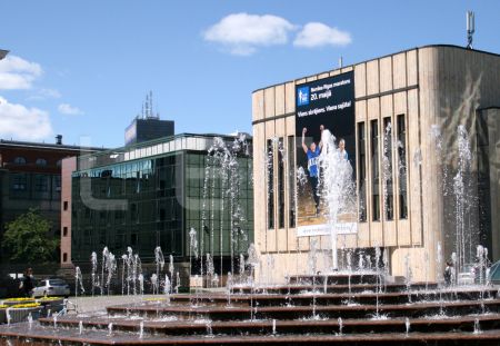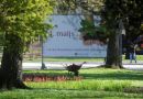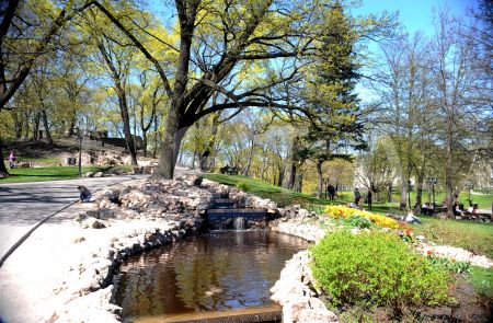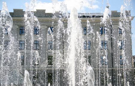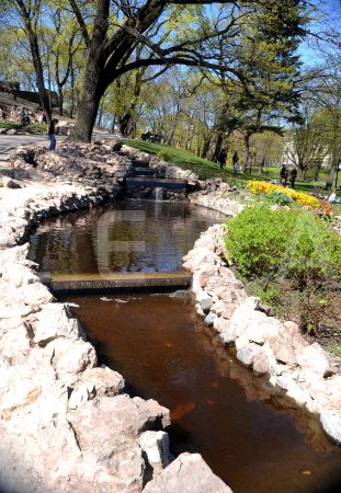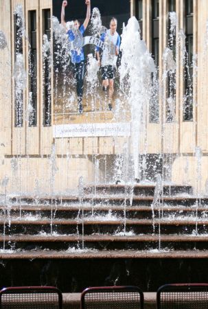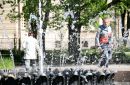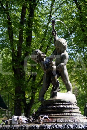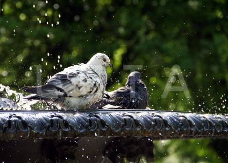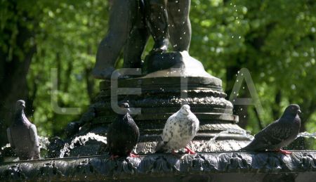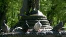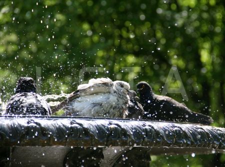 Baloži mazgājas Vērmanes dārza strūklakā.