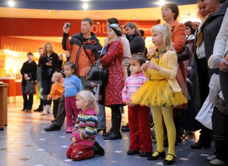 Vokālā grupa "Stariņi" uzstājas ar priekšnesumu tirdzniecības centrā ...