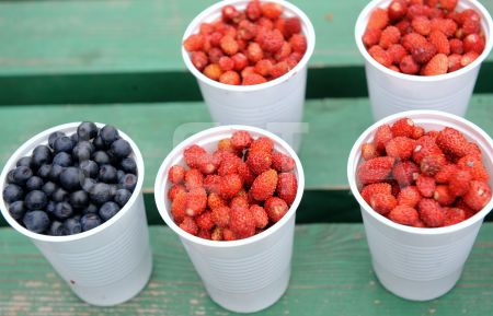 Mellenes un meža zemenītes Rīgas Centrāltirgū.