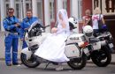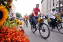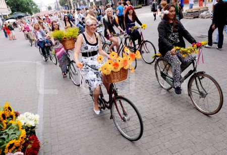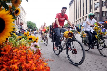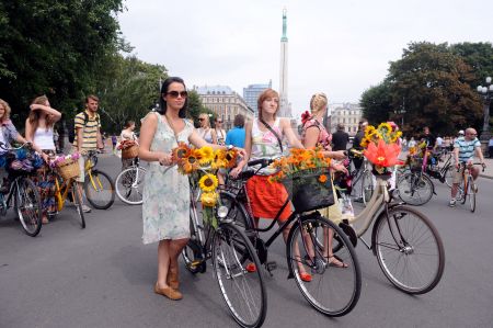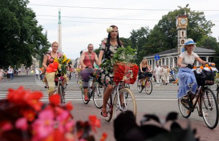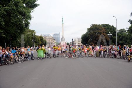 Ziedu brauciena dalībnieki pie Brīvības pieminekļa, kurā ikviens tika ...