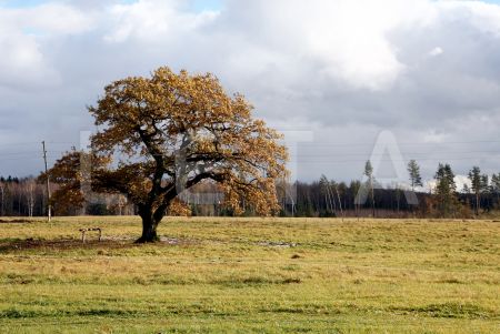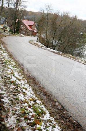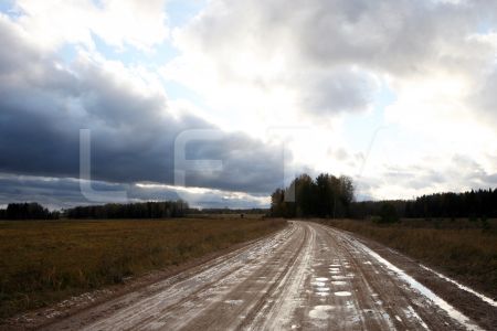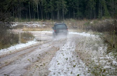 Automašīna uz Mālpils - Nītaures lauku ceļa rudenī.