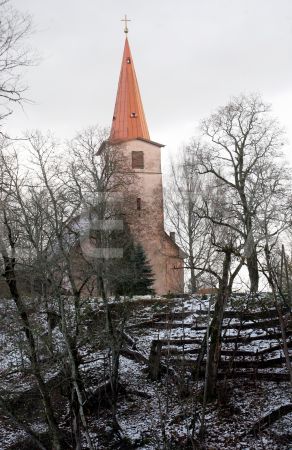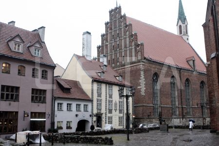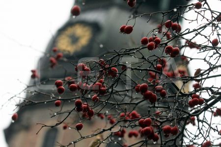Pēterbaznīcas tornis un vilkābele ar augļiem.