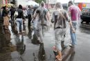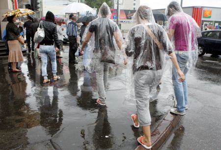 Cilvēki lietū.