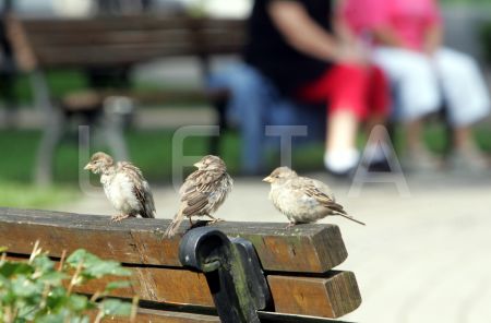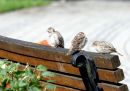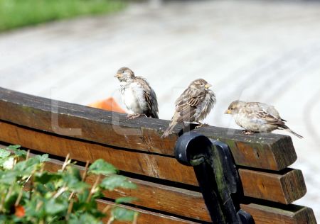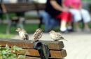 Zvirbuļi uz soliņa.
