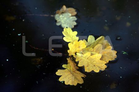 Rudens lapas ūdenī.