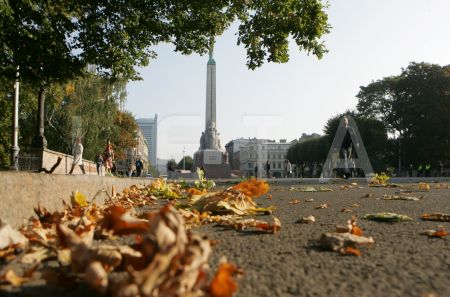 Laukums pie Brīvības pieminekļa rudenī.