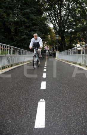 Velosipēdists uz Bastejkalna tiltiņa.